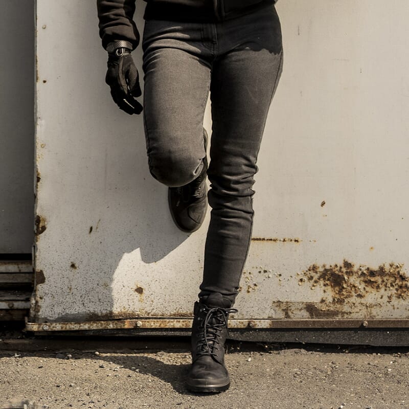 Vanliga jeans erbjuder liten skydd vid olyckor. Motorcykeljeans med förstärkningar och skyddsinlägg är ett bättre alternativ och ser ofta ut som vanliga jeans.