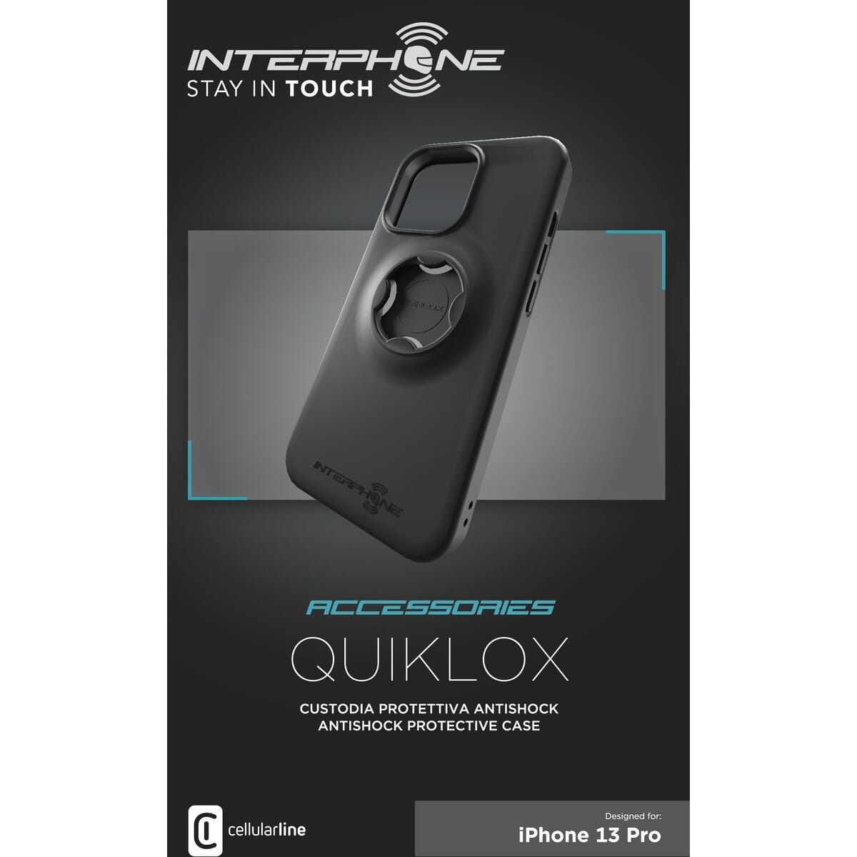 För iPhone 13 Pro, passar tillsammans med Interphone Quiklox Styrfäste" och/eller "Interphone Quiklox Spegelfäste