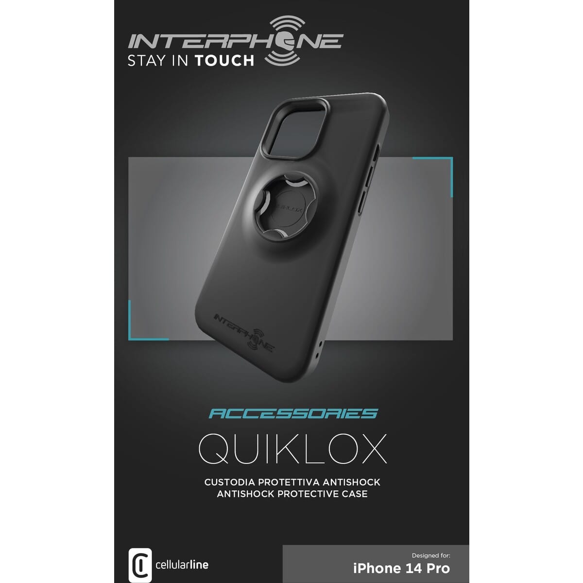 För IPhone 14 Pro, passar tillsammans med "Interphone Quiklox Styrfäste" och/eller "Interphone Quiklox Spegelfäste