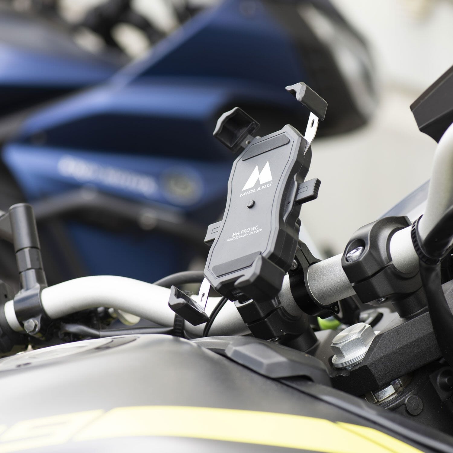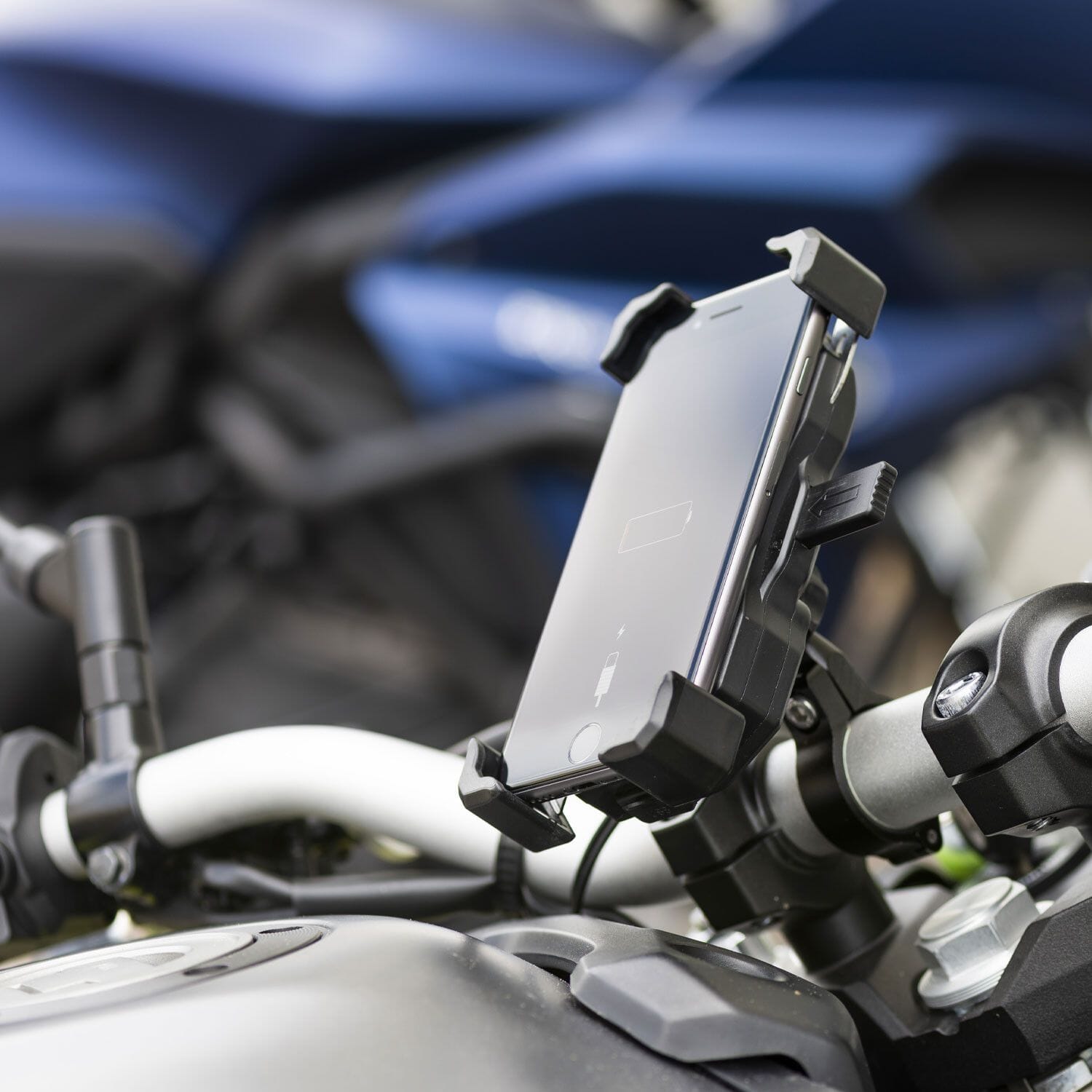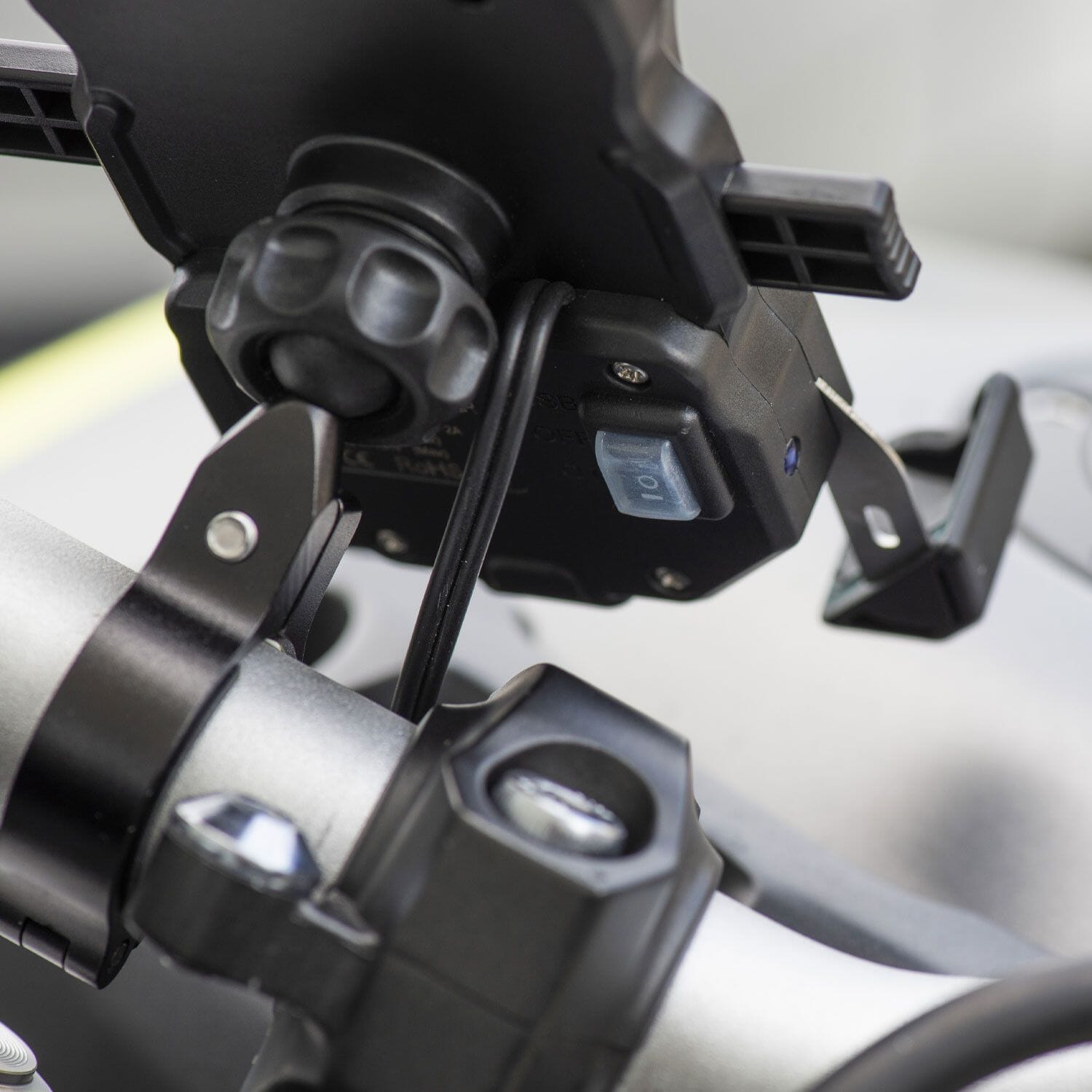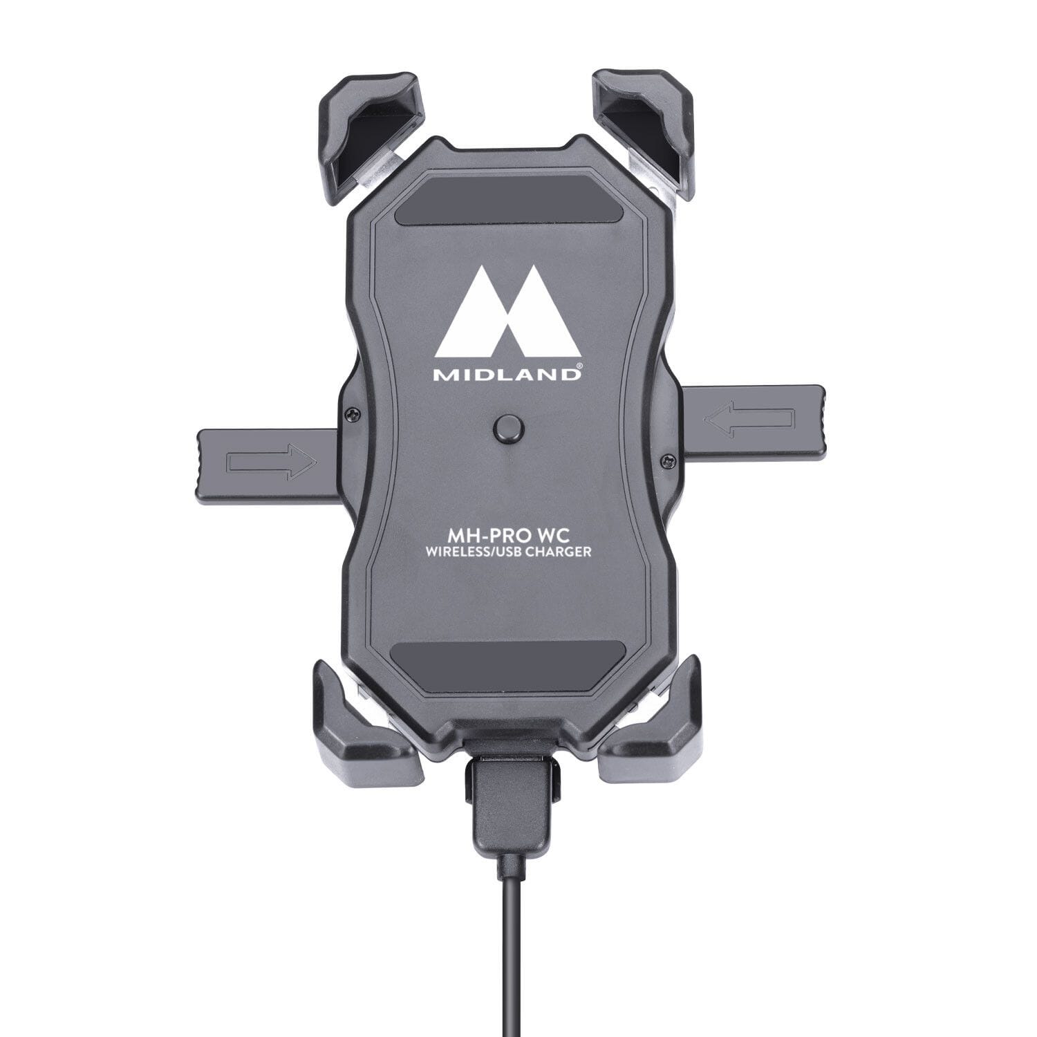 Genom FOUR HOOKS SECURITY SYSTEM ™ som garanterar det säkraste fästet av smarttelefonen till fästet. Den är utrustad med trådlös laddning för att hålla enheten alltid laddad. Den är också utrustad med en USB-kontakt för att ladda enheter som inte är kompatibla med trådlös laddning.