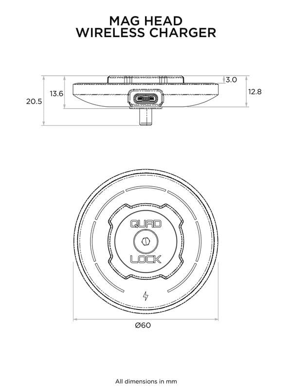 Quad Lock MAG trådlös laddningshuvud för Quad Lock bil- eller skrivbordsfäste. De starka magneterna håller telefonen på plats under användning hemma, på kontoret eller i bilen. Quad Lock-gränssnittet och magneten säkerställer att du alltid monterar telefonen rätt, antingen i stående eller liggande läge.