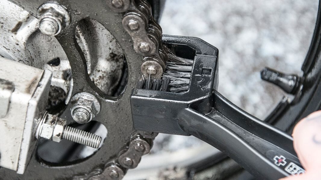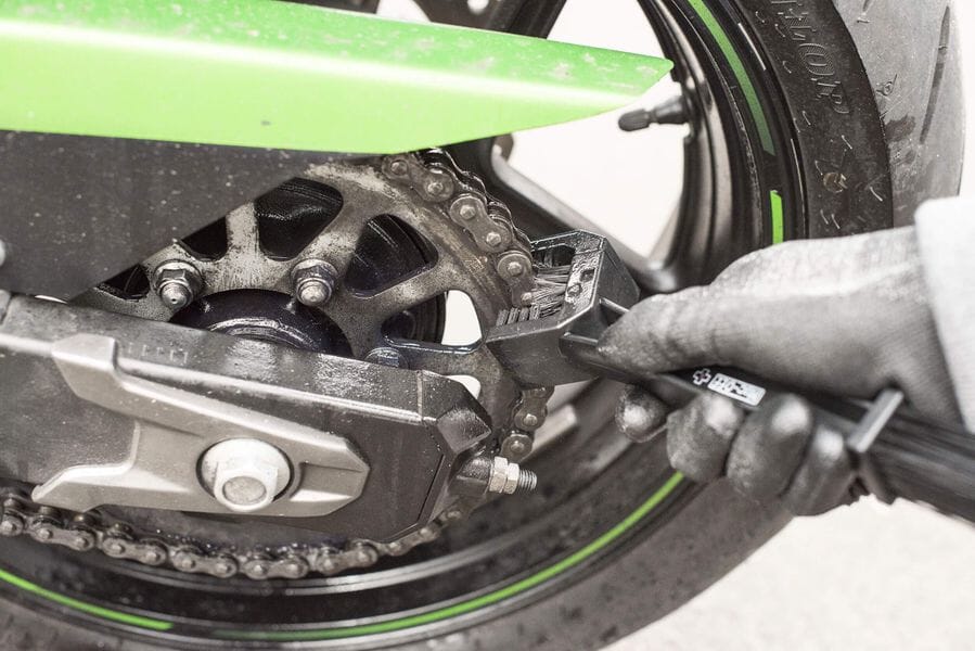 Med denna fina borste kan du verkligen komma åt för ordentlig rengöring av kedjan.