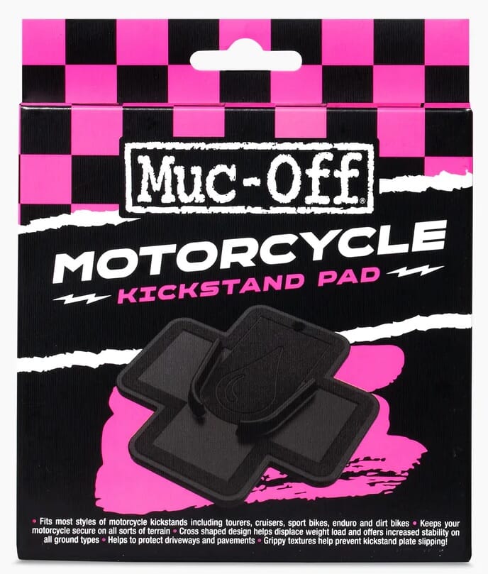 Med Muc-Off Motorcycle Kickstand Pad kan du vara säker på att din motorcykel står säkert och stadigt på alla typer av underlag.