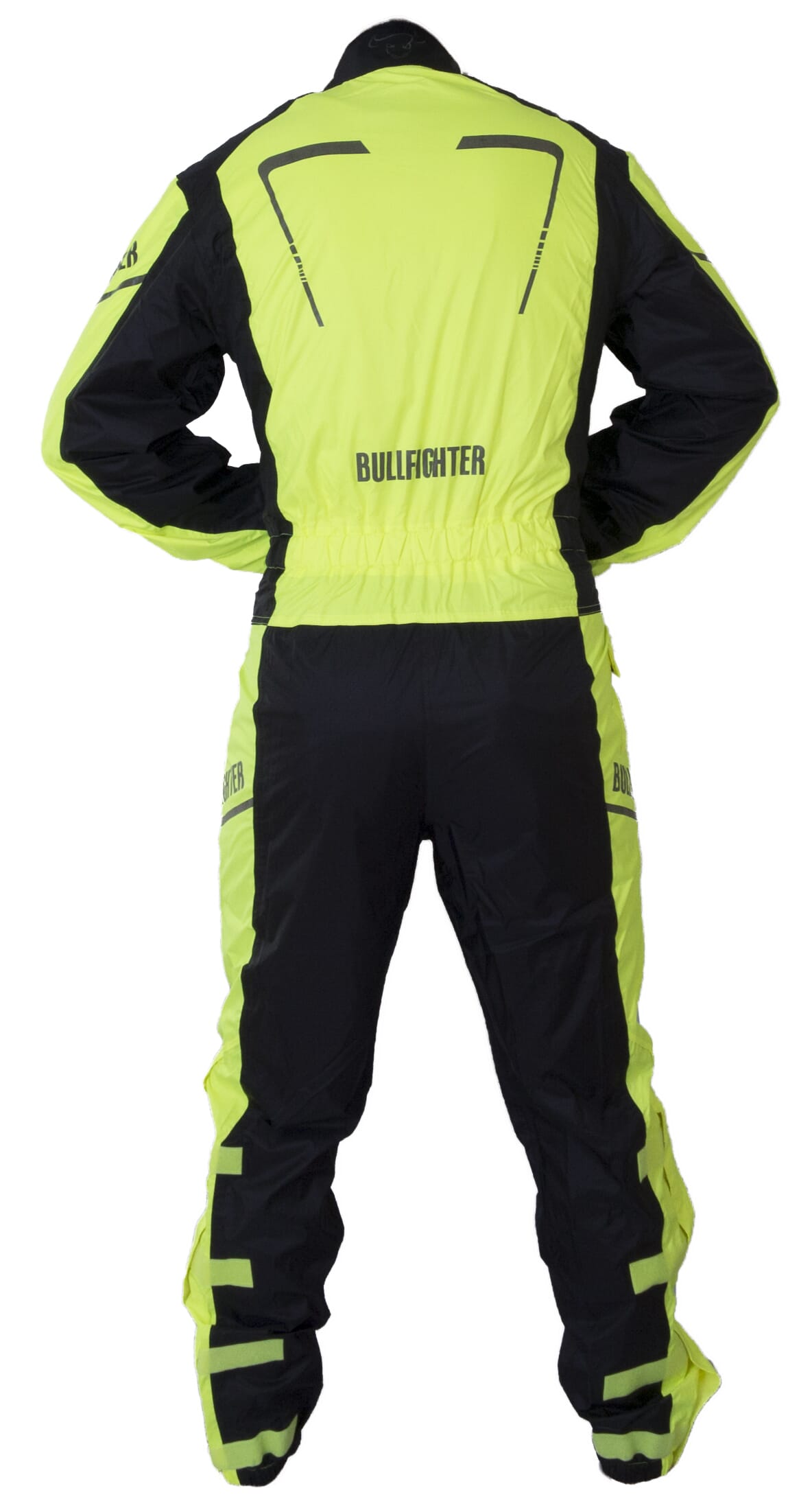 - Heldräkt regnkläder i svart färg med reflexer.