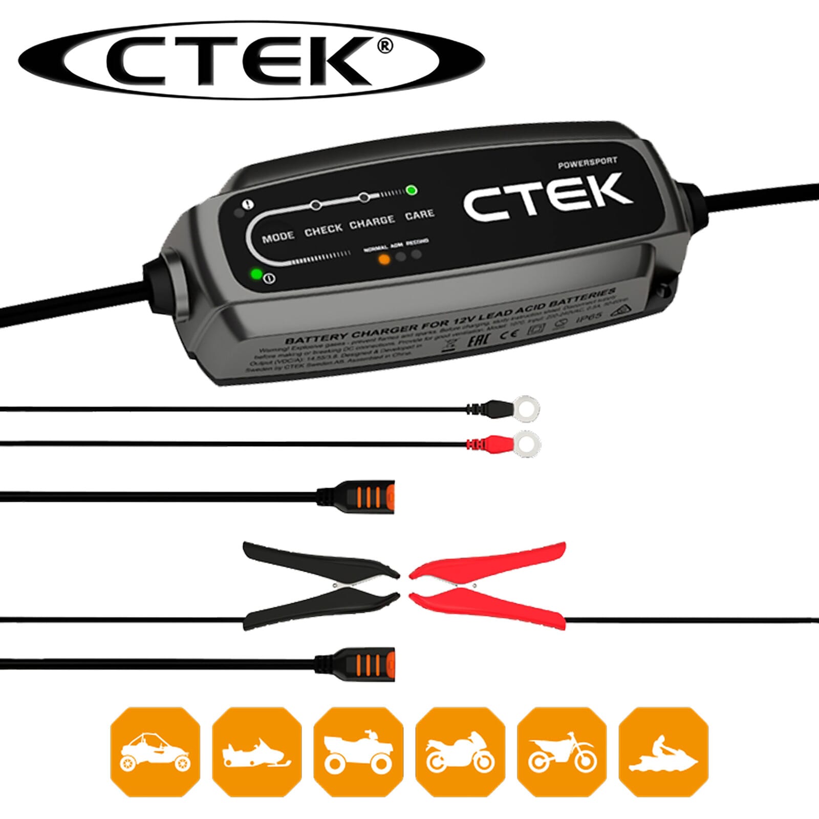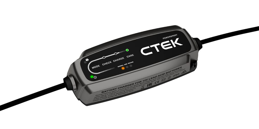 Batteriladdaren CT5 Powersport från Ctek med den senaste teknologin som säkerställer batteriet oavsett om det är vanligt bly/syra, GEL, AGM eller litiumbatteri.
