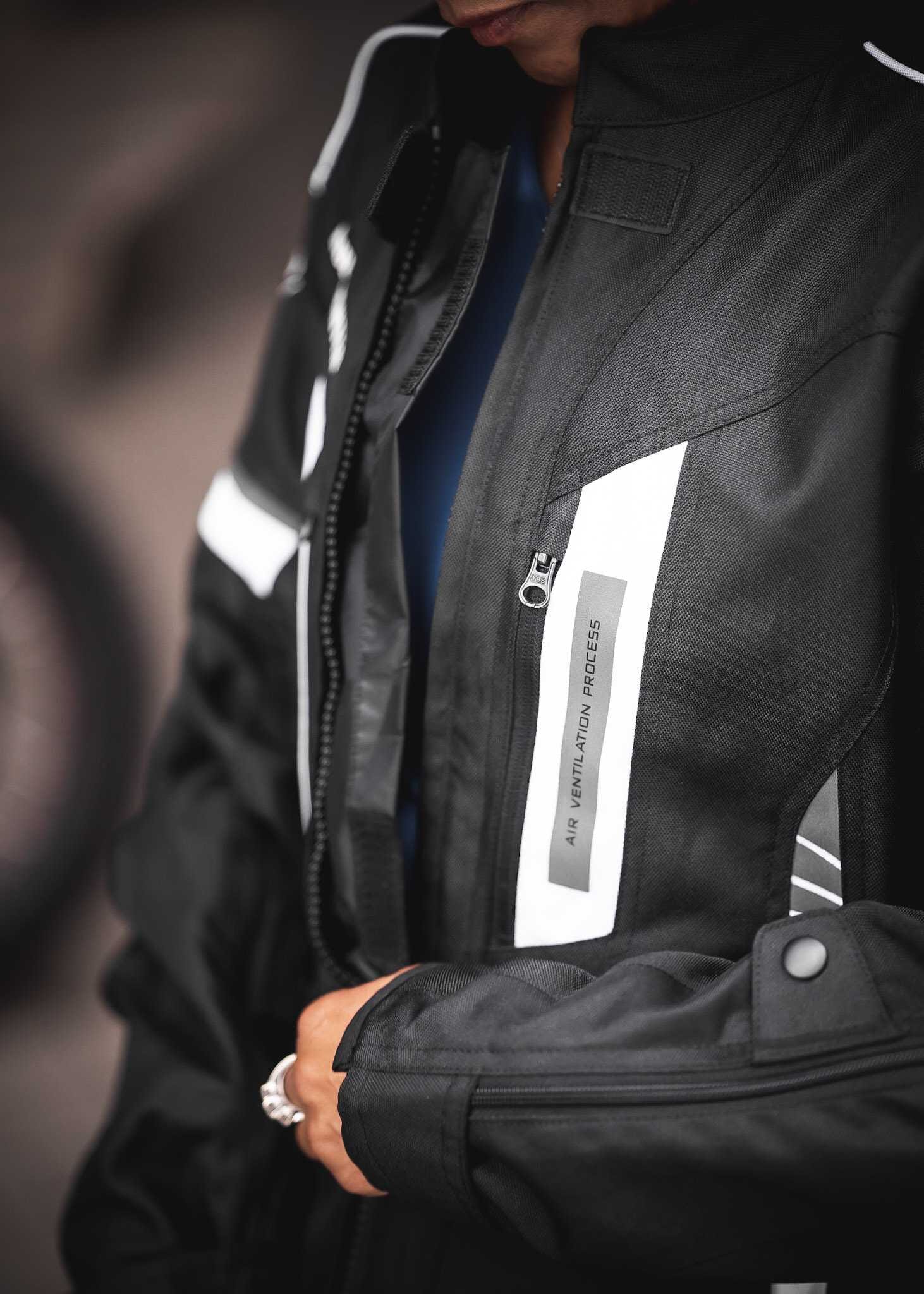 - Luftventilation i ärmar, bröst och rygg