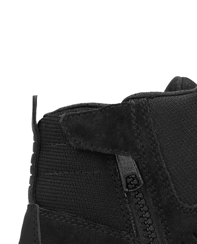 - Kardborreband för att täcka sidodragkedjan